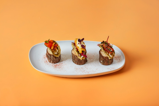 精心挑选当日进口新鲜海胆,入口即化;配以腌制西瓜和鲜柠檬丝,清甜中伴有微酸,再加上糯软的寿司米,外层以自制的海苔TACO饼紧紧裹住,由内而外勾引你的食欲,创造出一种更加简单轻盈的的美食新体验。